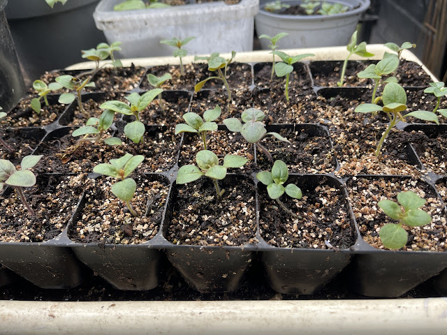 Thuis maak ik het bakje netjes schoon. Mayonaise tussen de zaailingen lijkt me niks. Vervolgens plant ik er de zaailingen van de lupine in, die nog beschut moeten blijven. Het houten stokje dient als plantenlabel. Het plan is om de zaailingen met bakje en al half mei in de grond te planten. Wat wil je nog meer?